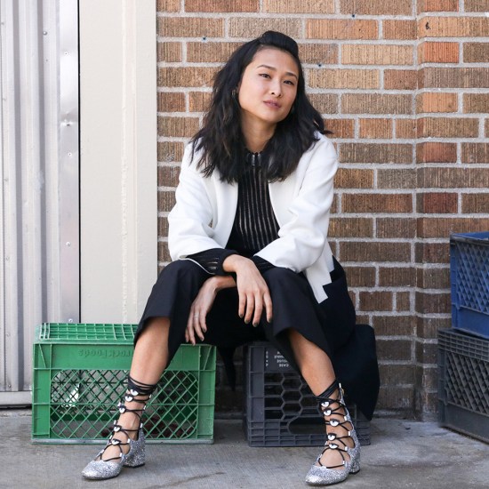Took these photos while out and about on Sunday morning. An overall neutral color palette (white, black, navy) with a pop of glittery happiness on my feet!