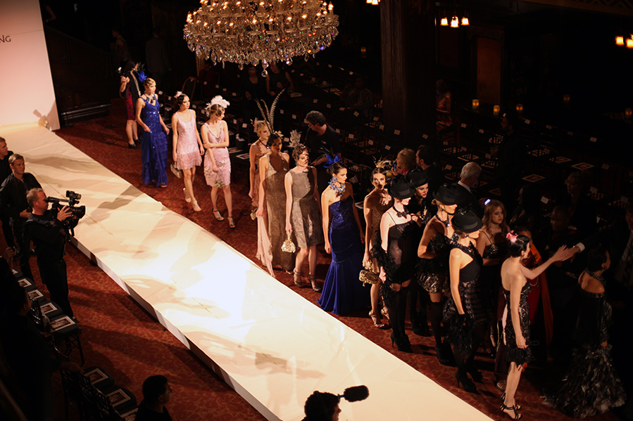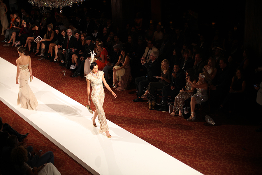 After we wrapped at The Grove, I rushed home, did a quick clothes swap, and fought traffic downtown to Cicada, where Sue Wong’s “Jazz Babies” show took place. Talk about a production! There were 8 different “acts” ranging from her trademark embellished cocktail dresses, to evening gowns, to bridal… all equally gorgeous and so perfectly accessorized!
